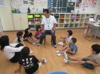 7月2日(火)6限目に、2年生の生活科で、本来なら鵜川駐在所まで行く予定でしたが、地震で建物が危険だということで、学校に駐在所の方に来ていただきました。今回は、たんけんたいの3回目と言うことで、おまわりさんの持ち物は何か?や警察署・駐在所・交番の違いは何か?等、3人それぞれが上手に質問をしていました。また、パトカーの中も見せてもらい、サイレンを鳴らすボタンや無線機のマイク等があることに驚きながら楽しく見学していました。