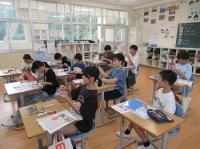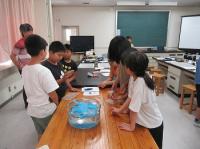 3・4年生は、「海の生き物採集」に1学期に行ったふれあい海洋センター近くの海岸で、生き物を採ってきました。かにやえび、なまこ等色々な種類の生き物を採集し、早速教室の水槽に移しました。しばらく観察のために飼育するそうです。