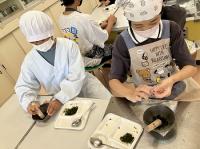 9月10日(火)5・6限目に、里海研究所の方をお招きして、6年生がふりかけ作りに挑戦しました。あおさやわかめをすり鉢ですって、その中にお好みで唐辛子や塩、梅などを配合し、オリジナルのふりかけを完成させました。試食では、温かいご飯に自分で作ったふりかけをかけておいしそうに食べていました。残ったふりかけは、おみやげに家に持って帰りました。