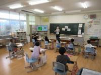 6月28日(金)4限目に、歯科衛生士の方を講師としてお招きした歯みがき教室がありました。最初にかむことの大切さについて教えていただきました。次に歯みがきの仕方「えんぴつの持ち方でこちょこちょみがき」を教えてもらった後、染め出し液をつけて歯をみがきました。丁寧にみがくと6分間でも足りないという子もいました。朝昼夜では、夜の歯みがきが一番大切なこともわかりました。今晩からは、自分の歯を健康に保つためにしっかり歯みがきをすることでしょう。