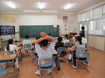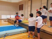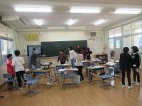 10月2日(水)5限目に、3・4年生の体育「表現運動」の授業の様子を鳳珠郡の体育部会の小中の先生方が参観に来られました。「NASAもビックリ!民間宇宙探検スペースUKAWA」という単元名で本時はグループみんなで場面を選んで、動きを考えて表現しました。「さんそがない、いんせきがむかってくる、さむーいうちゅうの夜」等、それぞれの場面カードからイメージする動きを考え、友達同士で話し合いながら1つの作品に仕上げていました。参観された先生方からも「とても楽しそうに活動していた。運動量も充分にあった。」と褒めていただきました。たくさんの先生方に見つめられながら、よくがんばった3・4年生でした。