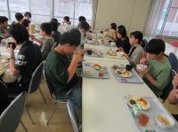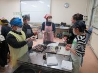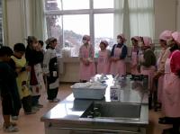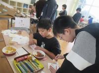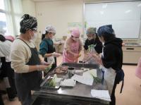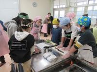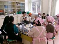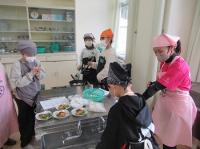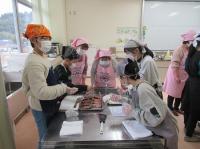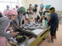 2月17日(月)の5・6限目は、海洋教育の一環として、能登町の食生活改善委員の方に来校していただき、5・6年生がぶりの照り焼き作りを体験しました。下味をつけたぶりの切り身に粉をまぶしてフライパンで焼き、仕上げにねぎとたれを入れて煮絡めます。どのグループもとてもおいしそうな照り焼きができました。最後は「魚と野菜の盛りつけ方がわかった」「やわらかくておいしかった」等とグループの代表がそれぞれ感想を言っていました。食生活改善委員の方々、本日はありがとうございました。