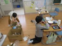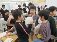 2月6日(木)の朝の時間に、1年生が生活科で用意した「おみせやさん」が開店しました。お客さんは6年生です。1年生は、お花屋さん、おもちゃ屋さん、ポケモンお花屋さんに分かれ、品物(カード)を売っていました。6年生は好きなお店で買い物を楽しんでいました。
