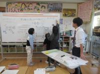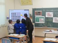 12月2日(月)5限目は、2年生の算数「かけ算」の授業で、学校の先生方と奥能登教育事務所の指導主事の先生2名の方との参観授業でした。ドット図を見ながら、同じ数のまとまりを探し、かけ算を使って数を求めていく授業でしたが、どんなやり方があるのかを一人一人考え、友達に説明することができました。