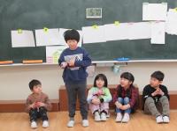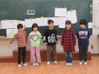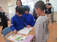 2月18日(火)3限目に、1年生が鵜川保育所の年長さんを招待し「新1年生との交流会」をしました。お互いに自己紹介をした後、1年生がけん玉・お手玉・ぬり絵・こまの紹介をして、楽しんでもらいました。1年生ははりきって自分の担当の遊びの紹介や教室の紹介をしていました。年長さんの6人も自己紹介がとても上手でした。4月から一緒に鵜川小で過ごすことを楽しみにしています。また、昼休み後には卒業を祝う会の全校合唱の練習をしました。