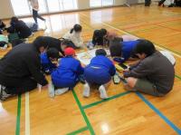 10月21日(月)の3・4限目に、来年度能都中で一緒になる予定の3校(鵜川、宇出津、小木)の6年生約50人が宇出津小学校に集まり、国立能登青少年交流の家から来て下さった職員3名の方から、楽しいゲームをしていただいて交流を深めました。