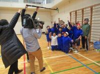 集合ゲームやじゃんけん、最後は半分に切ってあるパイプを持ちピンポン玉を落とさないように運ぶパイプラインゲームなど、一つ一つ体験するうちにいつの間にかみんな笑顔になり、他の学校の友達とも話をしながらゲームをしていました。学校に帰ってきてから、「他の学校の友達が2人できた!」と嬉しそうに話す6年生もいました。次回は12月に3校の6年生が宇出津小に集まり、3クラスにわかれて算数の授業をする予定にしています。勉強でも交流を深めてくれることでしょう。国立能登青少年交流の家の職員の皆様、今日は楽しい会を進行して下さり、ありがとうございました。
