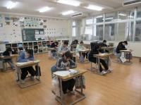 1月28日(火)、本校の学校運営の状況が適切かどうかを見ていただくための学校関係者評価委員会が行われました。PTA会長、学校評議員、学校関係者評価委員の方々合計4名の方に来校いただきました。6限目は授業参観をしていただき、その後、学校評価の説明に対してたくさんのご意見をいただきました。いただいた貴重なご意見を今後の学校運営に生かしていきたいと思います。4名の皆様、本日はありがとうございました。(6限目の授業の様子)