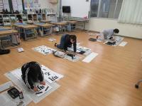 1月8日(水)は、3学期始業式でした。その後は、各クラスで書き初め大会がありました。1・2年生は硬筆、3~6年生は毛筆です。どの子も真剣に集中して作品を仕上げることができました。