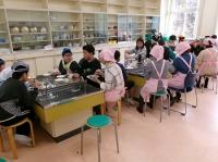 1月31日(金)3,4限目に5年生が調理実習で「ご飯とみそ汁」を作りました。ご飯は炊きあがる過程を見るために耐熱ガラスの鍋で炊きました。みそ汁は、にぼしから出しを取り、具はわかめと豆腐でした。特にご飯は炊き具合が難しいようでしたが、どのグループもおいしくできあがりました。