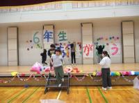 2月20日(木)、今日は明日の「卒業を祝う会」に向けて、どのクラスも体育館で練習をしました。また、午後からは体育館の飾り付けもしました。明日は1~5年生は6年生に、6年生は下級生に感謝の思いを思い切り表現してほしいと思います。