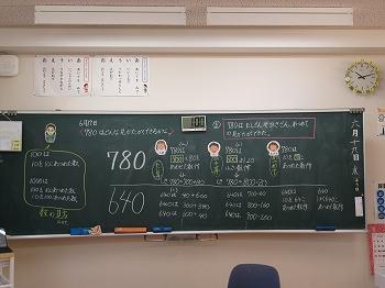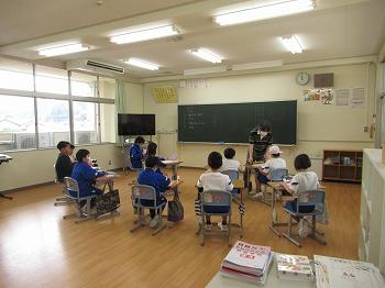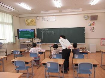 4月23日(火)の1限目は3・4年生の算数の授業がありました。3・4年生の算数は複式授業を行っています。担任が一人で2学年の授業を行うため、授業の約半分は自分たちで考えたり話し合ったりしながら進めることになります。今日は3年生が「0のかけ算」、4年生は「3桁のかけ算の筆算の仕方」を学習しました。児童同士が協力しながら課題解決に向かって取り組んでいきます。