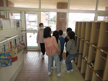 児童は「おさない・かけない・しゃべらない・もどらない・ちかよらない」を守り、素早く玄関先に避難することができました。津波警報が出ているときには、火災がなければ、本校3階へ避難することもありますが、旧鵜川小学校グランドや浄覚寺周辺に2次避難することもあることを伝えました。(旧鵜川小学校までの道が工事中で危険なため、今日は玄関前の避難としました。)