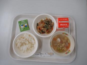 昨日から、給食が始まりました。昨日のメニューはカレーライスでした。今日はのっぺい汁と豚肉の生姜炒めでした。鵜川小の調理員さんが作って下さるおいしい給食です。味もさることながら、バランスもとれ、温かい給食に感謝です。