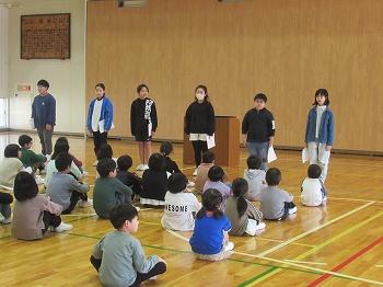 午後から全校集会とうかわっ子集会でした。全校集会では、授業のレベルアップをするために、先生方で「よくない授業」と「よい授業」の寸劇を行いました。今まで以上に充実した授業にするために「相手を見て話す・聞く」「反応をする」「たくさん話す」の3つを確認しました。また、うかわっ子集会(児童集会)では、委員会からのお知らせの後、給食委員会から、給食時のマナーについての発表がありました。明日はいよいよ予行練習です。天気も気になりますが、できることをやっていきたいと思います。