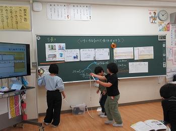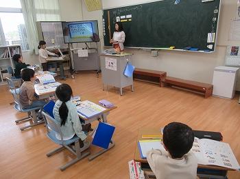 5月30日(木)、5限目の3・4年生の授業は、国語でした。3年生は「文様」という教材、4年生は「アップとルーズで伝える」という教材で、どちらも説明文になっています。段落のまとまりに気をつけて、筆者の主張や要点を読み取っていきます。6限目は、体育で幅跳びの授業です。体育館で授業をしていましたが、セイフティーマットに向かって思い切り跳んでいました。