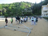 5月11日(土)朝の6時から、たくさんの保護者・児童の皆さんに集まっていただき、除草作業を行いました。校舎前、運動場、フェンス近くとそれぞれに分かれて、除草作業をしていただきました。おかげで、学校の周りがとてもすっきりしました。また、後半には運動会で使うテントの組み立てもしていいただきました。本当にありがとうございました。運動会まで後1週間です。環境を整えていただいたので、後は子ども達が本番で全力を出しきれるように、月曜日からも運動会練習をがんばります。18日(土)の運動会では、ぜひお子さんの勇姿を見に来て下さい。よろしくお願いいたします。