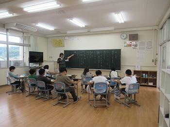 6月3日(月)、朝から震度5の地震がありました。子ども達の中には不安を抱えたまま登校した子もいたと思います。そんな中、今日は指導主事訪問といって、能登町教育委員会の教育委員の方や奥能登教育事務所の指導主事の先生方が鵜川小学校の子ども達を見に来られました。特に3限目は研究授業といって、今回は5年生の算数の授業を鵜川小の先生達も全員で参観する授業でした。きっといつもとちがう雰囲気で緊張した子もいたと思いますが、どの学年も課題解決に向けて、一生懸命書いたり話したりしてがんばりました。