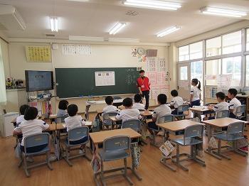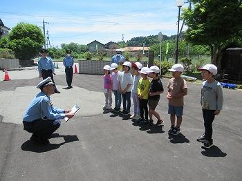 4月26日(金)の3限目に珠洲警察署から4人の署員の方に来ていただいて、交通安全教室と防犯教室を行いました。1・2年生は、学校近くの押しボタン信号までの道路を歩き、正しい歩き方や横断歩道の渡り方を学びました。3~6年生は、今年は地震の影響で、自転車には乗らずに、DVDで安全な自転車の乗り方について学習しました。どの学年も警察署員の方のお話にしっかり耳を傾けて、これからも「自分の命は自分で守る」という思いを持ちました。