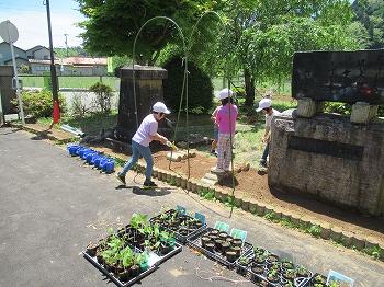 4月22日(月)の4限目、3年生が理科の時間に観察するオクラ・ピーマン・ホウセンカ・ヒマワリの4種類の種を植えました。4つのグループに分かれ、手際よく種を植えていました。これから、夏に向けて花が咲いたり実がなったりするのが楽しみです。