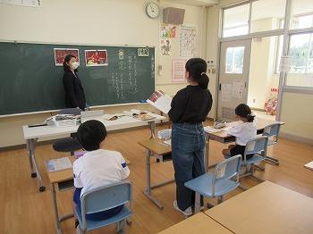 今週から朝読書の時間に6年生が1・2年生に絵本の読み聞かせを始めています。6年生はただ絵本を読むだけではなく、「どの人が好き?」「どんな顔してる?」と1・2年生に語りかけながら和やかな雰囲気で読み聞かせをしてくれています。1年生も2年生も6年生が読む絵本の世界に引き込まれています。
