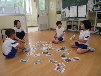 5月31日(金)、今日は1年生が2人お休みでした。3限目の1・2年生は図工でした。20枚ずつの写真カードから気に入ったカードを選んで「好きなところ・いいと思ったところ」を発表しました。1年生も2年生も上手に発表ができていました。4限目は体育でしたが、来週金曜日に行われる「うかわオリンピック」の練習で、シャトルランの練習をしていました。今日は20回まででしたが、本番では何回まで走ることができるか挑戦します。