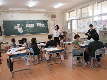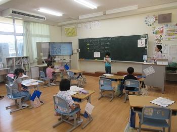5月1日(水)、今日は1・2年生の算数の授業の紹介です。1年生は「7はいくつといくつ」の学習で、ブロックを操作しながら、7がいくつといくつに分かれるかを考えて発表しました。2年生は「ひき算の筆算」の学習で40ー18はいくつになるかを、筆算する前に、お金(模型)を使いながら、一人一人説明をしていました。