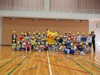 6月10日(月)5限目に、鵜川小学校の体育館にピカチュウがやって来ました。みんなピカチュウのお面を被ってお出迎えしました。その後は、縦割り4グループでボール送りゲームをして楽しみました。最後に記念写真を撮って、お土産もいただきました。ピカチュウのおかげで元気をもらった1時間でした。ポケモン・ウィズ・ユー財団の皆さん、今日はどうもありがとうございました。
