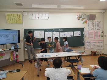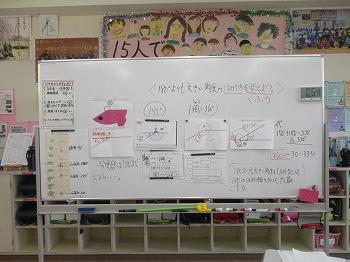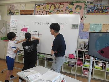 6月20日(木)は、3限目に3・4年生の、4限目に1年生の算数の授業がありました。3・4年生は複式での算数授業です。3年生は「ぼうグラフと表」の単元で<ぼうグラフの表し方をわかりやすくしよう>という課題で、グループで協力しながら、グラフの1めもりの大きさが小さいと違いが分かりやすいことを学習しました。4年生は「角の大きさ」の単元の<180°より大きい角度のはかり方を考えよう>という課題で、どうしたら答えが求められるかについて、180°に補助線を引いて計算するやり方と、360°からひくやり方の2通りの考え方を説明しながら学習しました。1年生は「あわせるといくつ、ふえるといくつ」の単元で<4+3=7のたしざんのおはなしをつくろう>という課題でした。教科書の絵を見ながら、すずめや子ども等を主語にしたたし算のお話作りをしました。