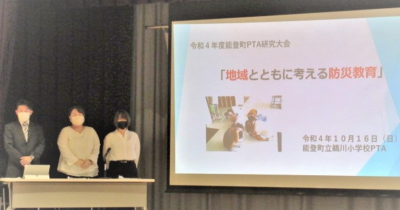 能登町PTA研究大会で、今年度は鵜川小学校PTA の皆さんに実践発表をしていただきました。