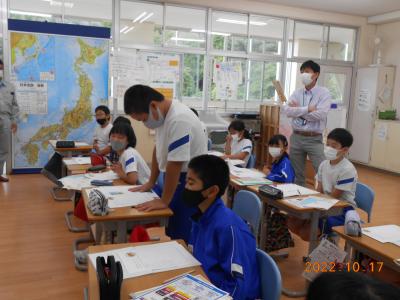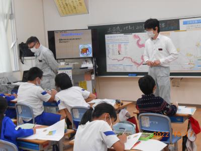 鵜川小学校は、土砂災害危険区域となっており、ハザードマップを見ながら身近なこととして真剣に話を聞いていました。土砂災害には「土砂崩れ」「土石流」「地滑り」が有り、実際の動画を見せてもらいながら、自然災害の怖さを感じ災害が起きた時の避難の仕方などを学びました。10月20日には、土砂災害の避難訓練を実施し、5年生は学んだことを実践し、さらに深めることができました。県土木の皆さんありがとうございました。