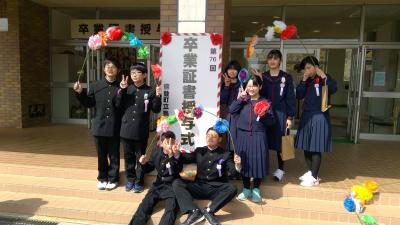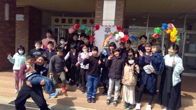 8名の卒業生が巣立っていきました。みんなのお手本になるあこがれの6年生でした。式が終った後の見送りでは、下級生が6年生に抱っこされたり一緒似写真を撮ったりと、別れを惜しみました。中学校でもきっと活躍してくれると思います。ありがとう。そしてさようなら。