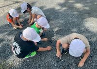 7月25日(木)は、1~4年生の水泳教室の予定でしたが、雷注意報が出ていたので、水泳は中止になりました。そこで、1時間目は教室で勉強をしていましたが、2時間目は1・2年生は畑で種拾いや野菜の収穫を、3・4年生は3年生が総合で作った支援して下さった方への感謝の看板を学校前から鵜川小前の信号のそばの道路脇に設置してきました。3時間目は、1~4年生で玄関先で水遊びをしました。1・2年生の生活科で使ったシャボン玉もあり、短い時間でしたが楽しく遊んでいました。今日の登校日は、水泳教室はできませんでしたが、帰るときには皆、笑顔で帰って行きました。