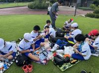 7月18日(木)は、1・2年生が運動場で水遊びをしました。ペットボトルに水をくんで、友達同士かけ合いをしたり、自分で水をかぶったりして、とても楽しそうでした。また、3・4年生は午前中は磯観察に行き、午後はお楽しみ会でドッジボールやテニスをしました。5・6年生もお楽しみ会があり、5年生はチーズケーキを6年生はチョコフォデュを作ったり、スポーツで汗を流したりしました。どの学年も今日は楽しい一日でした。