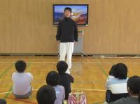 3月3日(月)4限目に5・6年生、5限目に1~4年生を対象にスポーツ教室がありました。講師は元日本代表のサッカー選手のお二人と県サッカー協会の方でした。最初は体ほぐしの運動で、じゃんけんゲームやペアでボールを使ってのキャッチボールなどをした後に、高学年はサッカーのゲームを1~4年生はシュートゲームをして楽しみました。最初は、遠慮していた子供たちでしたが、時間が終わるころには、心も体も開放して笑顔があふれていました。