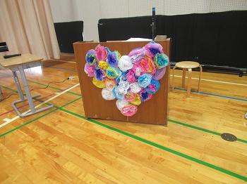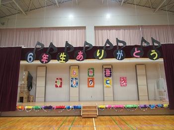 2月19日(木)の6限目は、3~5年生で体育館の飾り付けをしました。音符の飾りも久しぶりに復活し、会場がとても賑やかになりました。明日の「卒業を祝う会」が楽しみです。