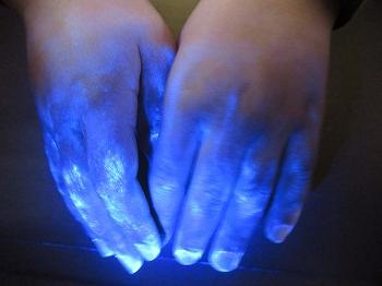 10月31日(金)は、1・2年生は保健の先生と一緒に手の洗い方について勉強しました。目にはみえなくても、手にブラックライトを当てると汚れがわかり、驚いていました。インフルエンザも流行し始めています。しっかり手洗いをして元気な体でいてほしいと思います。