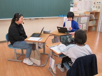 11月27日(木)の午後の5・6年生の外国語の授業はスパトレでした。3人グループになり、クロムブックを通して、画面ごしの先生と英語で会話を楽しみました。