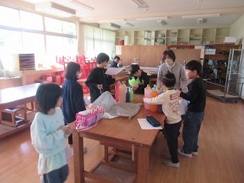 11月12日(水)は2時間目に、グループに分かれて「うかわっ子まつり」の子ども屋台の準備をしました。14日は天気も良さそうで、本番が楽しみです。