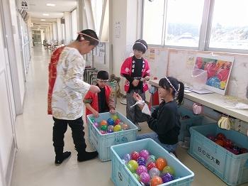11月14日(金)の3時から「うかわっ子まつり」がありました。これは、能登町児童生徒提案型学校生活充実化事業の一環で、「38人のこれからと心を紡ぐプロジェクト」第2弾として行われました。初めは、子ども屋台からです。射的やくじ引きなど、子どもたちが考えたお店が並びました。その後は、鵜川小学校で作った「にわかときりこ」による練り歩きでした。思い思いの衣装を着て、保育所まで歩きました。その後は、保護者の皆様に協力いただいた「食べ物コーナー」です。職員による「わたがしコーナー」もありました。最後は花火をして「うかわっ子まつり」は大成功で終わりました。保育所のお子さんにも声をかけ、親子で参加していただきました。自分たちで考えたプロジェクトが実現して、とても満足した一日でした。保護者の皆様、地域の皆様、たくさん協力していだたき、本当にありがとうございました。