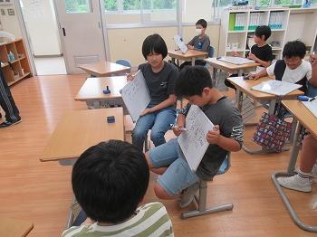 5月28日(火)、今日の1限目に、6年生は外国語科で「日常生活について友達と紹介し合おう」を、5年生は算数で「計算のきまりをマスターしよう」という課題の授業をしていました。6年生は自分の休日の生活について書いた英文を友達同士で読んで交流し合っていました。5年生は計算のきまりについてホワイトボードに書いた自分の考えを見せ合いながら話し合っていました。さすが、高学年です。授業中に自分の意見を相手に伝えることを通して、言い方に慣れたり、適切な表現ができるようになったりして、学習を深めていました。また、5年生は5・6限目に家庭科で調理実習をしました。ゆで野菜を作り、手作りのフレンチドレッシングをかけて食べました。ぜひ、家でも作ってみてほしいと思います。