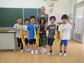 6月6日(金)の5限目に能登町町会区長会連合会の能都支部長の坂上さんより、1年生が登下校時にも安全に歩いてほしいということで、1年生一人一人に傘を手渡していただきました。これから梅雨に入りますが、雨の日でも車に気をつけて歩いてほしいと思います。