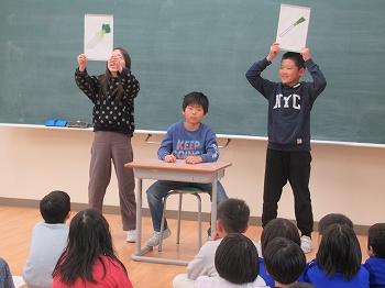 12月3日(水)は、全校集会とうかわっ子集会がありました。全校集会では、12月はまとめの月だから、テスト等でできなかったところはしっかりできるようにして、冬休みを迎えてほしいと話しました。また、うかわっ子集会では、各委員会からの発表の後、給食委員会が「食べ物にはそれぞれ栄養があり、元気な体を作るためにも好き嫌いせずに食べよう」と劇を交えて伝えてくれました。楽しい劇で、みんなの笑いを誘っていました。