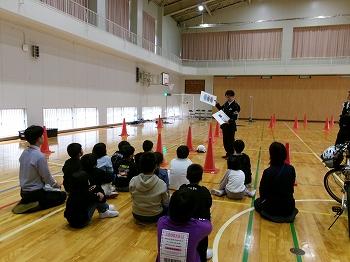 4月23日(水)は、防犯教室と交通安全教室がありました。防犯教室では、自分の身を守るためにどうしたらいいかを考え、危ない時に「助けてー」と大きな声を出す練習をしました。また、交通安全教室では、低学年はおまわりさんと一緒に、実際に信号まで歩きました。高学年(3年生以上)は体育館で自転車の正しい乗り方についておまわりさんから教えてもらいました。その後、実際に自転車に乗って、練習しました。自転車を提供してくださった保護者の皆様、ありがとうございました。子ども達は交通安全は一つ一つ守らないと大きな事故につながることや自分の命の大切さを改めて学習することができました。お忙しい中、教えに来てくださった珠洲警察署の方々、ありがとうございました。