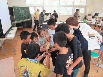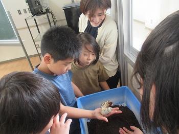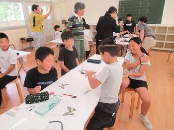 10月2日(木)の4限目は、1~4年生を対象にふれあい昆虫館の館長さんと職員の方が来て下さり、「昆虫教室」がありました。ヘラクレスオオカブトの成虫と幼虫、オオゴマダラの成虫・さなぎ・幼虫など、実際に昆虫を持ってきて下さったので、子どもたちはわくわくしながら授業を受けました。(中には昆虫が苦手で、触れることができない子もいましたが。)昆虫は、卵から幼虫、(さなぎ)、成虫、そして卵とぐるぐる回って生き続けていることを教えて下さいました。実際のチョウを見て、昆虫の足の数は6本と学習したはずなのに、4本しかないのはなぜか?と疑問を持ち、職員の方に質問をしている子がいました。実物を見たからこそ湧いてくる疑問が今日の学習を深めていました。ふれあい昆虫館の職員の皆様、今日は子どもたちのために遠いところから来て下さりありがとうございました。