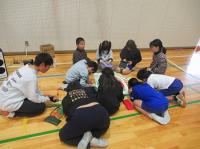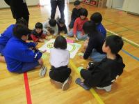 12月10日(火)13:00から全校での「うかわっ子ふれあいタイム」がありました。4日から10日までは人権週間ということで、標語を書いたり、ポスターを作ったりして人権について考えています。今日の集会では、人権についての話の後、全校で「だるまさんが〇〇した」遊びをしました。代表委員会の子がだるまになって、「だるまさんが好きなスポーツをした」「だるまさんが寝た」「だるまさんが勉強した」等、それに合わせて動く遊びをしました。その後、縦割りグループになって、一人一人が人権について考えたことや今日の交流での感想を書き、模造紙のだるまさんのお腹に貼りました。