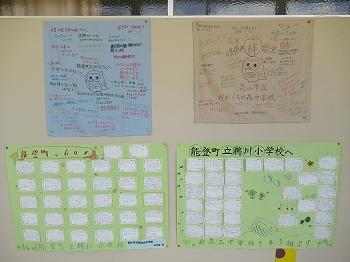 4月25日(木)に、能登町の姉妹都市である千葉県流山市の2つの中学校(南流山中学校、おおぐろの森中学校)から、心温まる応援メッセージが届きました。子ども達は「とてもきれいな字!」と驚きながら、メッセージを読んでいました。南流山中学校の皆さん、おおぐろの森中学校の皆さん、ありがとうございました。