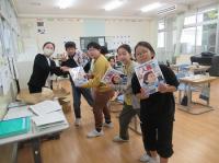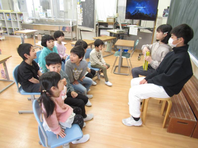 4限目に1年生を迎える会がありました。この日のために、6年生が企画準備をし、上手なリードで会を盛り上げました。また、5年生はプレゼントを用意してくれました。1年生は緊張しながらも、インタビューに答えていました。後半は全校でこおり鬼をして楽しみました。少しずつ学校に慣れてきた1年生です。