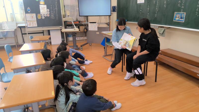 今週から朝読書の時間に6年生が1・2年生に絵本の読み聞かせを始めています。6年生はただ絵本を読むだけではなく、「どの人が好き?」「どんな顔してる?」と1・2年生に語りかけながら和やかな雰囲気で読み聞かせをしてくれています。1年生も2年生も6年生が読む絵本の世界に引き込まれています。
