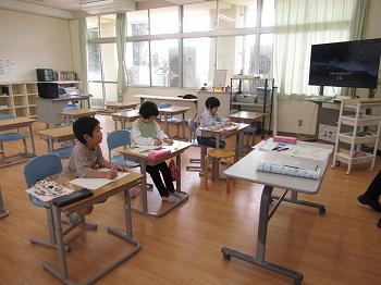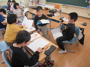 4月23日(火)の1限目は3・4年生の算数の授業がありました。3・4年生の算数は複式授業を行っています。担任が一人で2学年の授業を行うため、授業の約半分は自分たちで考えたり話し合ったりしながら進めることになります。今日は3年生が「0のかけ算」、4年生は「3桁のかけ算の筆算の仕方」を学習しました。児童同士が協力しながら課題解決に向かって取り組んでいきます。